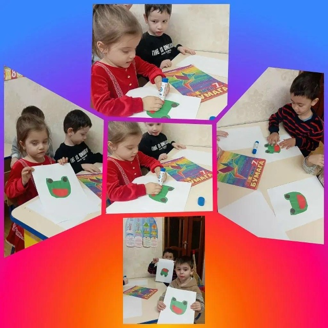 Воспитатель средней группы «Солнышко» Дубаева Х.Ш. Провела занятие по Аппликации на Тему: «Лягушонок»